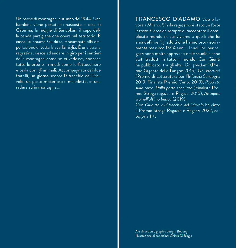 In un paese di montagna, nell'autunno del 1944, una bambina viene portata di nascosto a casa di Caterina, la moglie di Sandokan, il capo della banda partigiana che opera su in montagna. È cieca, con occhi inquietanti. Si chiama Giuditta, ed è scampata alla deportazione di tutta la sua famiglia. Giuditta è strana: è in grado di andare in giro per i sentieri della montagna come se ci vedesse, conosce tutte le erbe e i rimedi come le fattucchiere e parla con gli animali. Un giorno scopre l’Orecchio del Diavolo, un posto misterioso e maledetto dove si trova un muro alto e concavo, con al centro un sedile. Seduta lì, Giuditta sente le voci che arrivano dal fondovalle. Così, ogni giorno, torna all’Orecchio del Diavolo. ascolta le voci e i rumori, e riesce ad avvertire in anticipo i partigiani quando i tedeschi si mettono in moto. Per la vigilia di Natale Sandokan e otto dei suoi tornano in paese. Ma quando all’uscita dalla messa, passata la mezzanotte, sono circondati dai tedeschi è chiaro che qualcuno ha fatto la spia e li ha venduti. Giuditta allora sale all’Orecchio del Diavolo e resta lassù in ascolto, giorno e notte, per scoprire chi è il traditore...