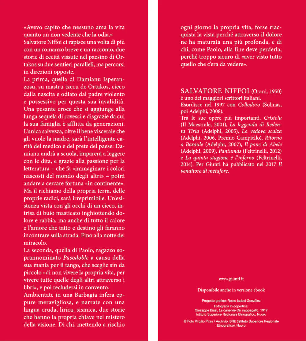 «Avevo capito che nessuno ama la vita quanto un non vedente che la odia.» Salvatore Niffoi ci rapisce una volta di più con un romanzo breve e un racconto, due